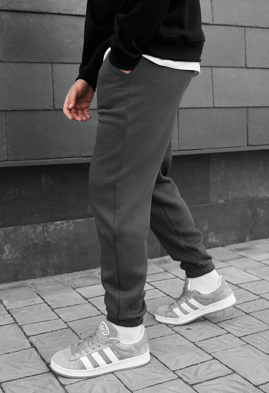 Універсальні утеплені спортивні штани у темно-сірому кольорі — ідеальний вибір для комфортного відпочинку та створення повсякденних образів у спортивному стилі протягом осінньо-зимового сезону. Вони виготовлені з якісної європейської 100% бавовни та утеплені мікрофлісом преміумкласу, що гарантує виняткове тепло та м'якість. Штани мають пояс на резинці зі шнурком для зручної фіксації на фігурі. Функціональність забезпечують дві прорізні кишені спереду та одна накладна кишеня ззаду, на якій нашита фірмова бирка з логотипом бренду. Знизу штани фіксуються манжетами з еластичною резинкою, що забезпечує додатковий захист від холоду.