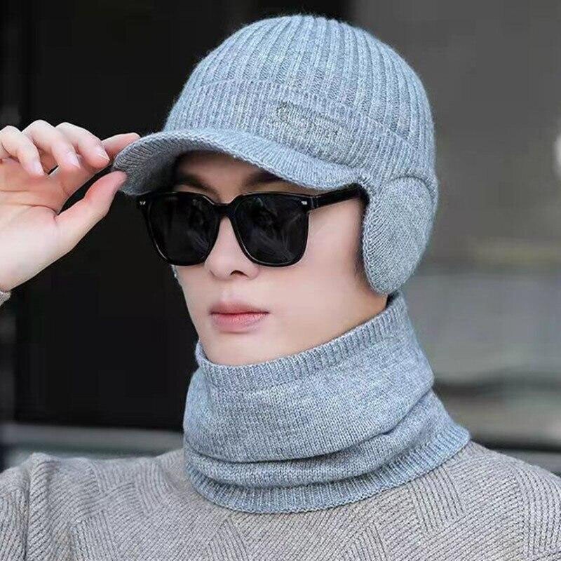 Фото - Теплий чоловічий комплект (шапка+бафф) Narason сірого кольору - Men box