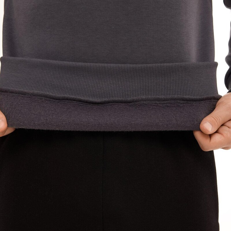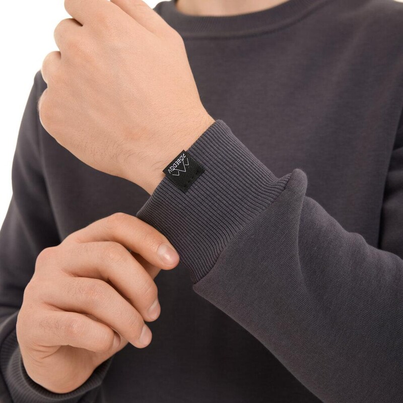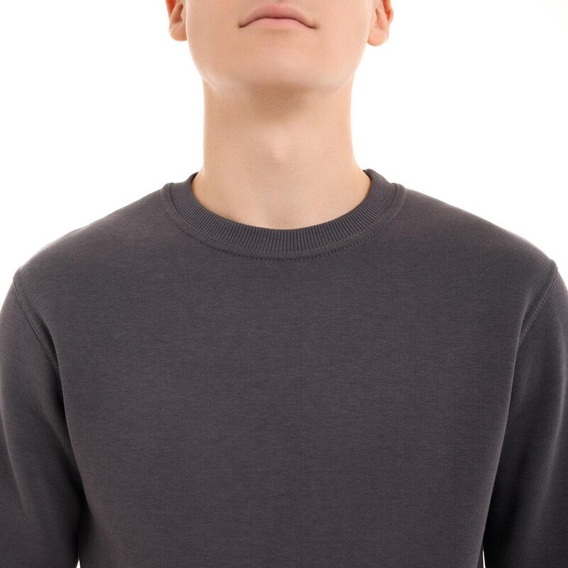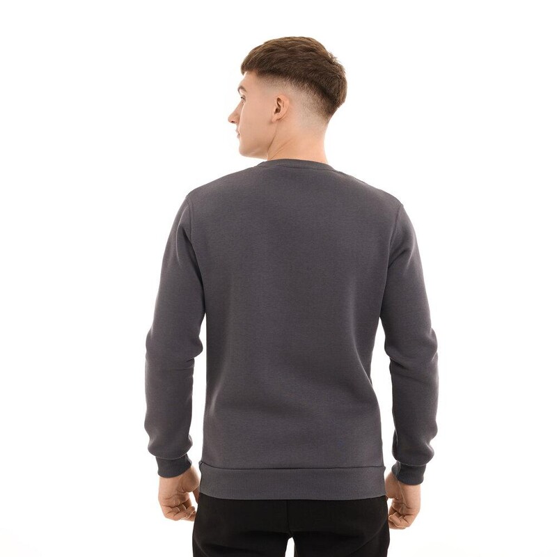 Затишний світшот у стриманому темно-сірому кольорі від українського виробника Pobedov, розроблений для холодного сезону (осінь/зима). Модель стандартного крою Regular виготовлена з якісного турецького бавовняного трикотажу тринитка з начосом "фліс", що робить її надзвичайно теплою та приємною на дотик (склад: 80% бавовна). Матеріал відмінно зберігає свій первісний вигляд і колір. Світшот має класичний круглий виріз горловини, а по нижньому краю та низу рукавів вшита високоякісна резинка для ідеальної посадки. Фірмова жакардова бирка Pobedov розміщена на манжеті рукава. Цей базовий елемент гардеробу чудово доповнить будь-який комплект — від джинсів до спортивних штанів.