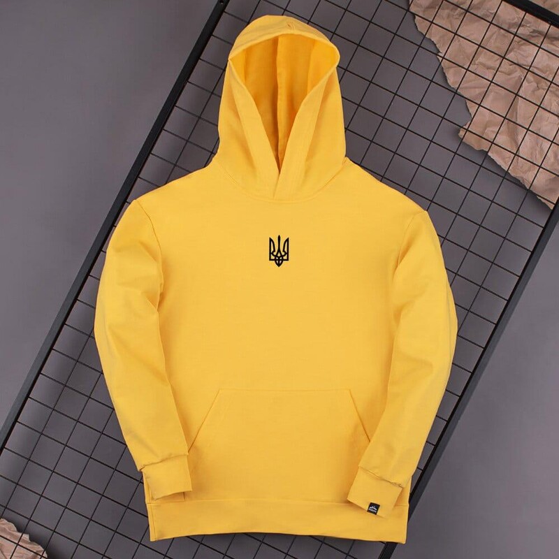 Фото - Жовте худі Pobedov 008 із чорною вишивкою "Герб України" - Men box