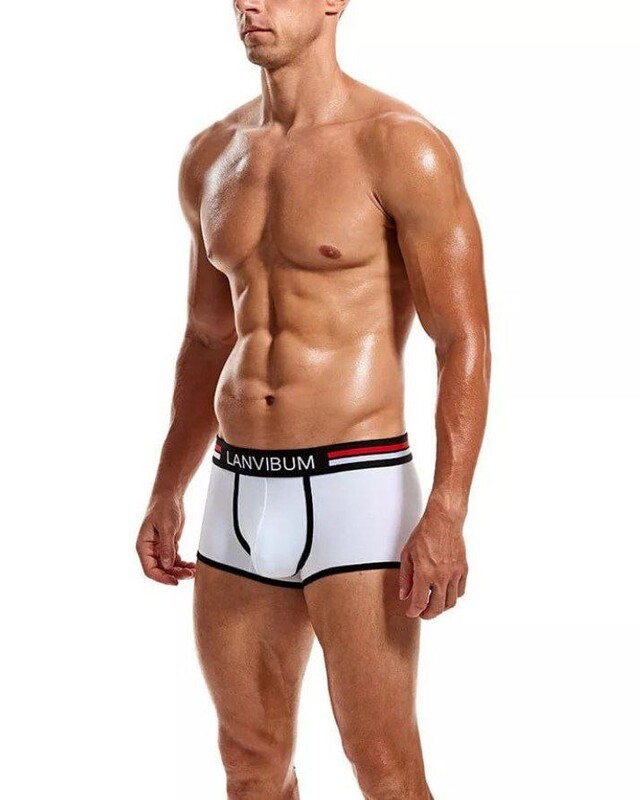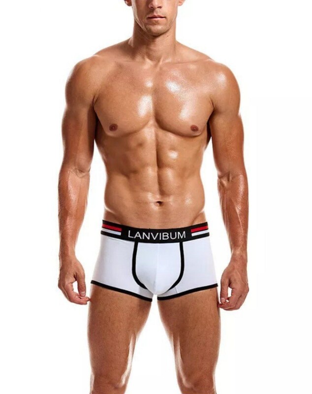 Фото - Труси боксери від бренду Lanvibum білі з чорним кантом - Men box