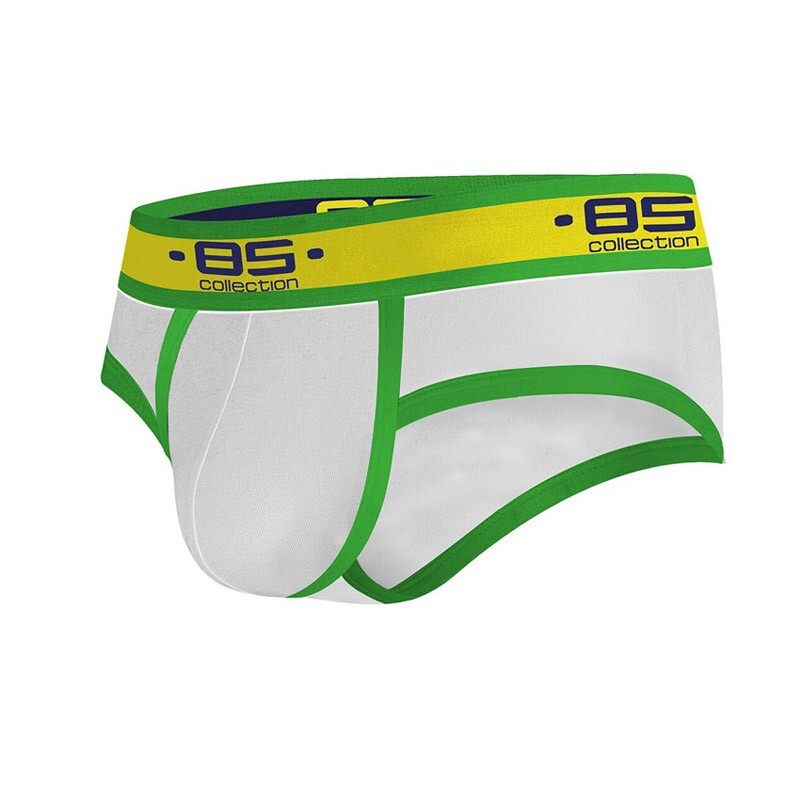 • Труси бріфи зручна чоловіча білизна 0850 світло-сірі з салатовою окантовкою