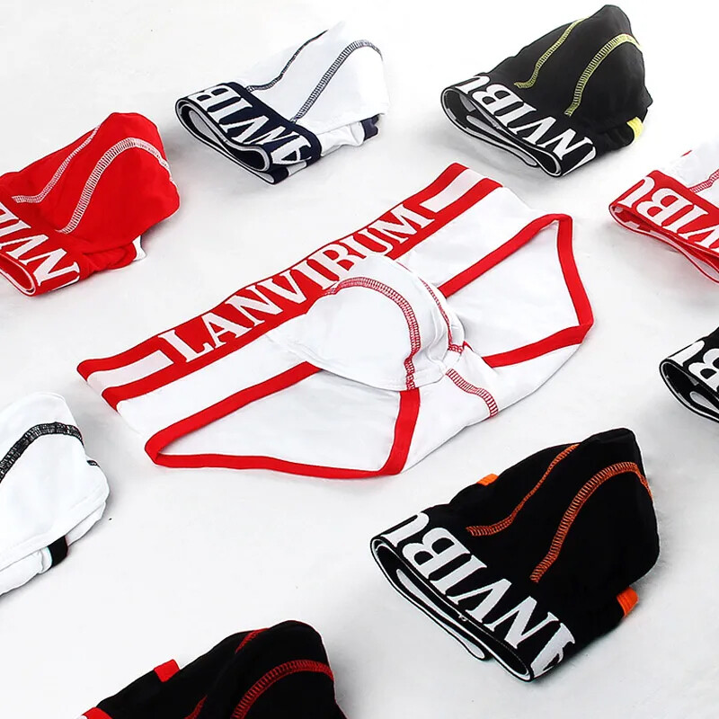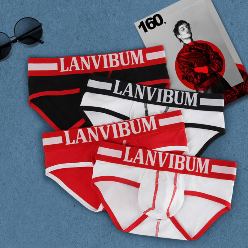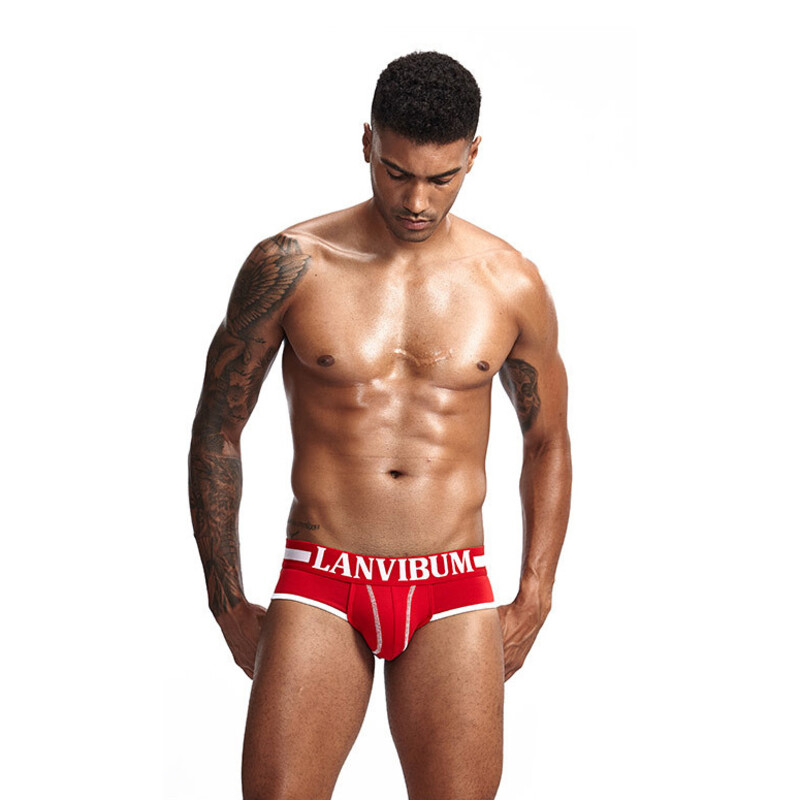 • Бавовняні чоловічі труси бріфи Lanvibum червоні з білими швами