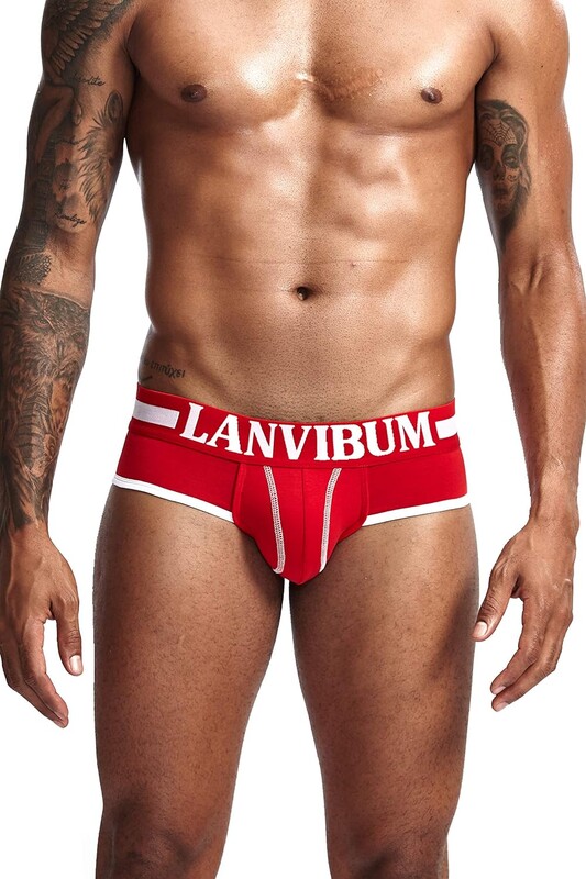 Фото - Бавовняні чоловічі труси бріфи Lanvibum червоні з білими швами - Men box