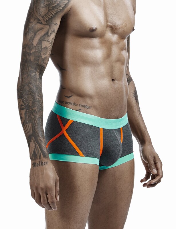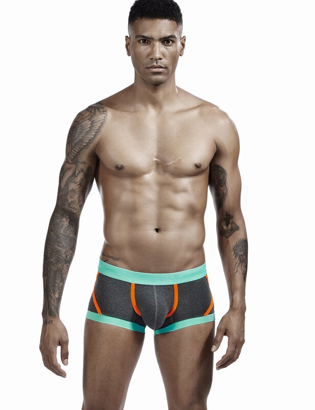 • Чоловічі бавовняні боксери Seobean сірі труси зі смарагдовим поясом