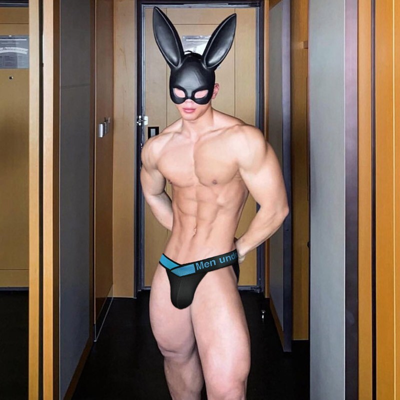 Сексуальні труси для чоловіків D.M чорно-білі стрінги з ерекційним кільцем