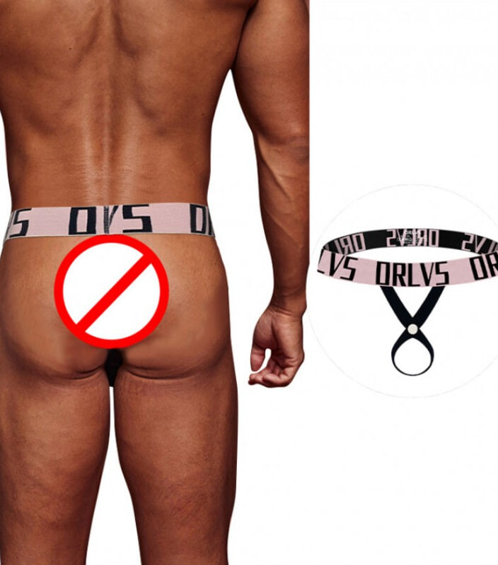 Фото - Сексуальні труси для чоловіків D.M чорно-білі стрінги з ерекційним кільцем - Men box