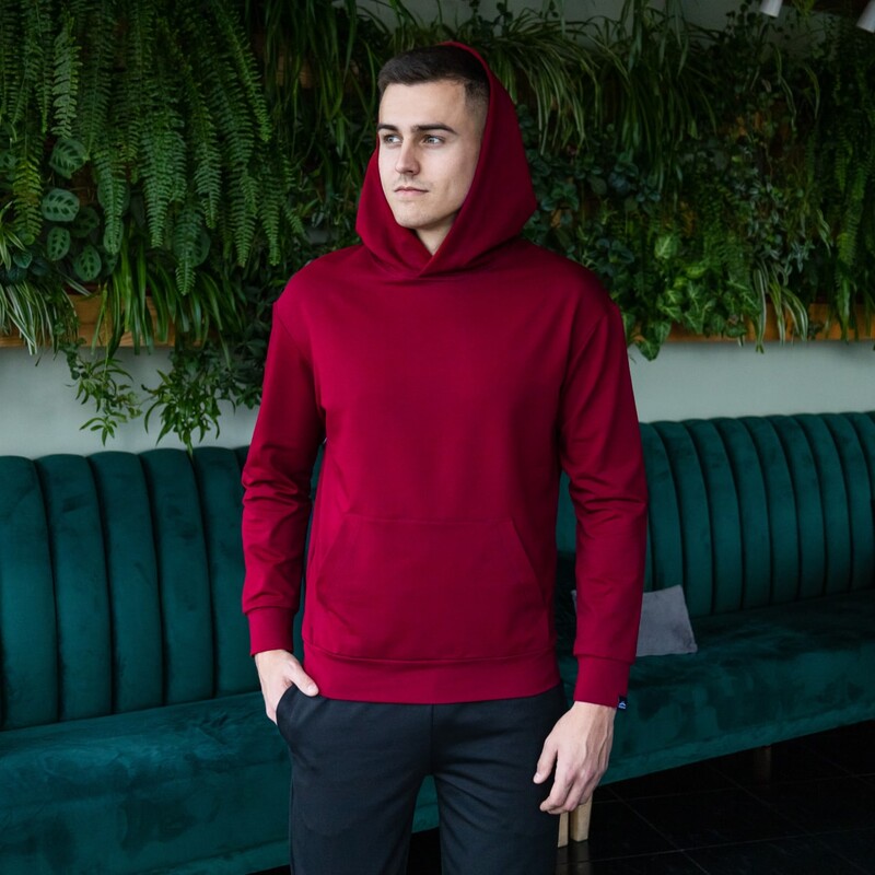 Фото - Унісекс худі Pobedov 97 з капюшоном бордового кольору - Men box