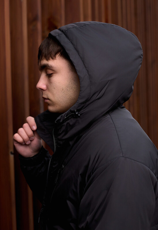 - висока горловина переходить у капюшон, ширина якого регулюється шнуром із пластиковими фіксаторами;