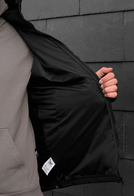 - три кишені: дві на прикритій планкою блискавці з боків і одна нагрудна на водовідштовхуючій блискавці;