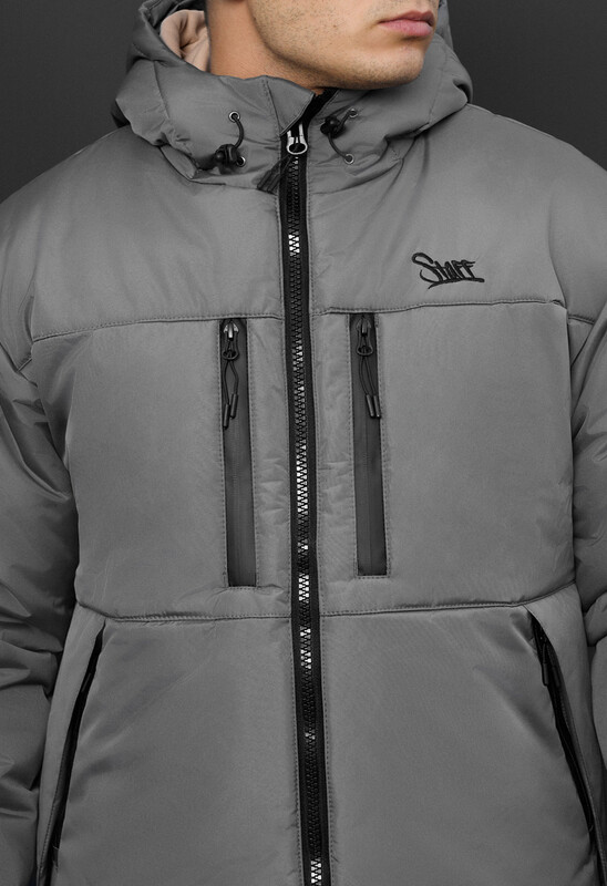 Ця куртка — втілення дизайнерської сміливості у відтінку стриманого сірого, що перетворює зимовий одяг на виразний витвір. Вона забезпечує повну готовність до холодів: вологовідштовхувальна мембрана відбиває стихію, а інноваційний утеплювач Hollowsoft гарантує тепло і легкість. Крій зі спущеними плечима створює актуальний об’єм, не сковуючи рухів. Затишний капюшон із високою горловиною формує надійний кокон, регульований шнурами. Ексклюзивна особливість моделі — утончені вирізи в області нижніх кишень, що додають силуету ексклюзивності. Функціональність підсилена шістьма кишенями: дві нагрудних на водонепроникній блискавці для швидкого доступу та дві нижні, прикриті планками. Якісна вишивка на грудях фіксує фірмовий стиль, а регульовані манжети та внутрішня стяжка по низу дозволяють ідеально запечатати тепло.