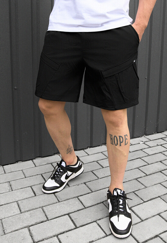 Практична та функціональна модель шортів карго з великою кількістю кишень та регульованим поясом на шнурку.