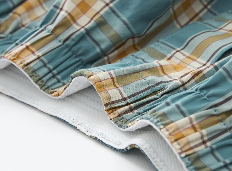 Стильні чоловічі подовжені труси Seobean у жовто-блакитну клітинку – поєднання практичності та яскравого дизайну. Виготовлені з натуральної бавовни, вони зберігають форму та колір після прання. Зручна посадка робить їх універсальними для щоденного використання.