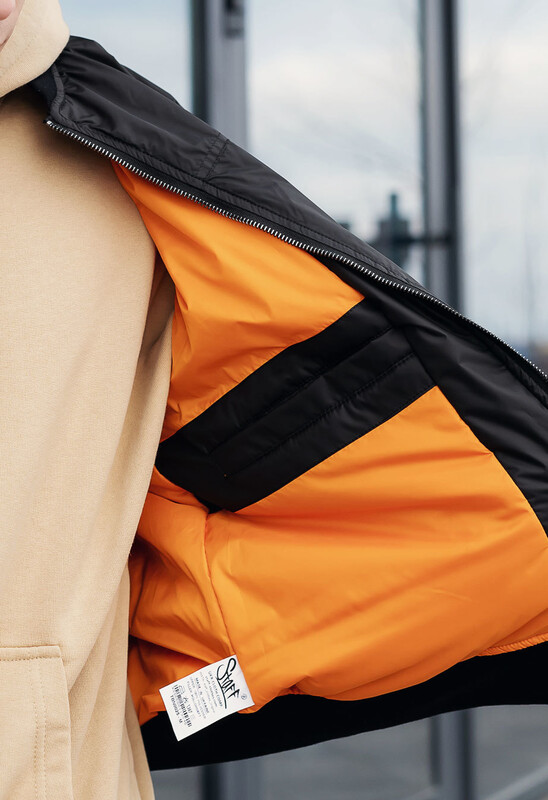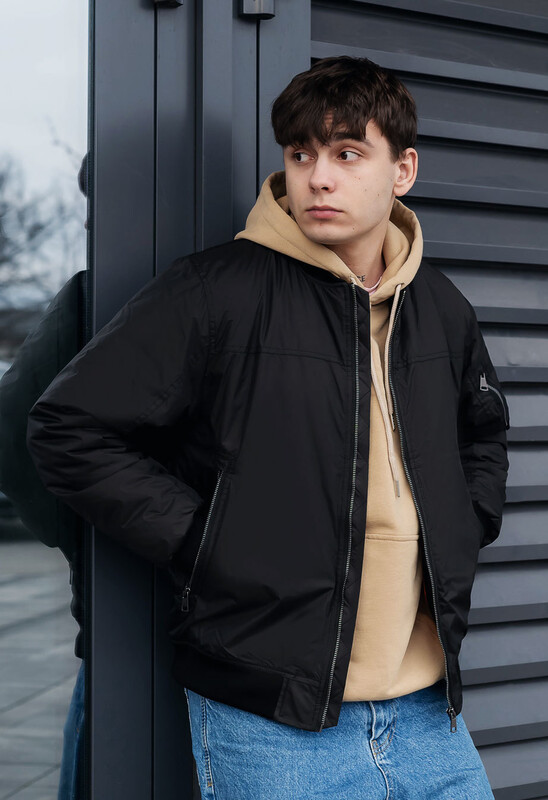 Класичний утеплений бомбер не сковує рухів і чудово поєднується із будь-яким типом одягу, а міцна тканина захищає від вітру та опадів.