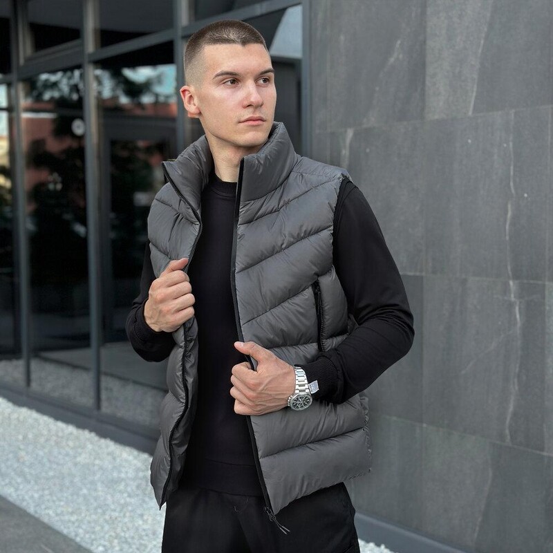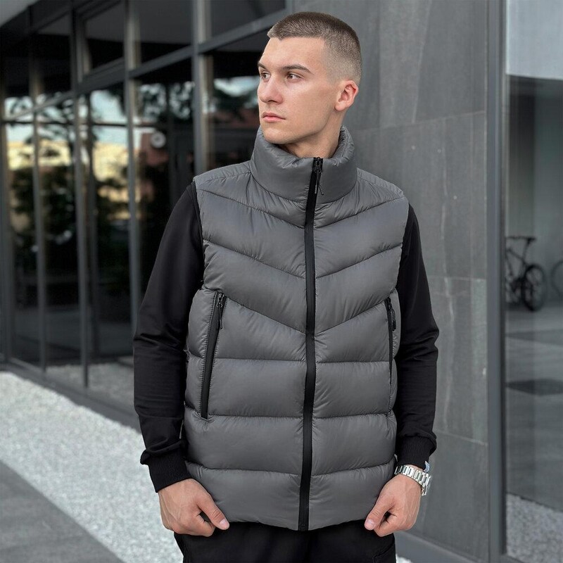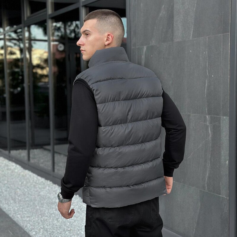 • Утеплена жилетка Pobedov Puffer темно-сірого кольору