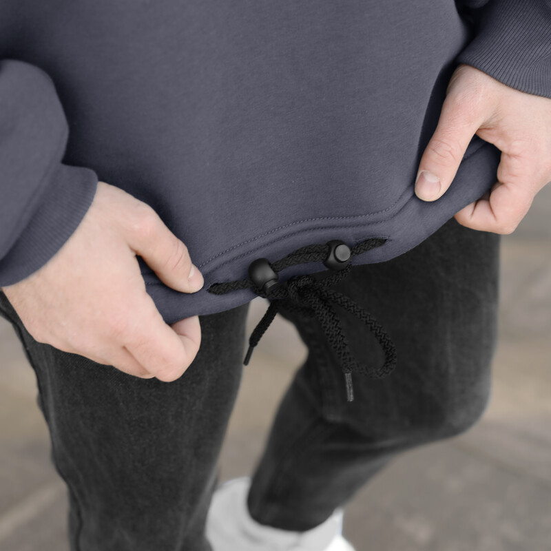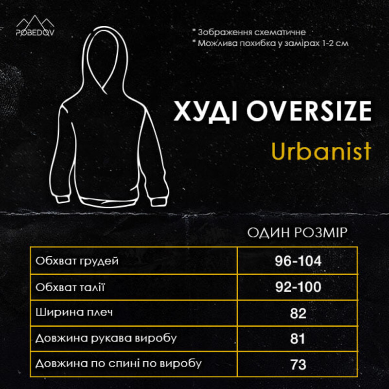 Матеріал: тринитка з начесом. Вільний крій. Низ виробу фіксується за допомогою шнурка та фіксаторів. На манжеті рукава фірмова жакардова бирка "Pobedov"