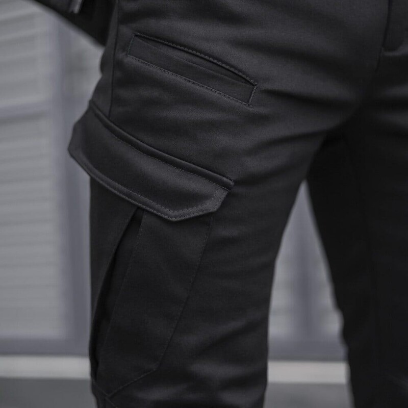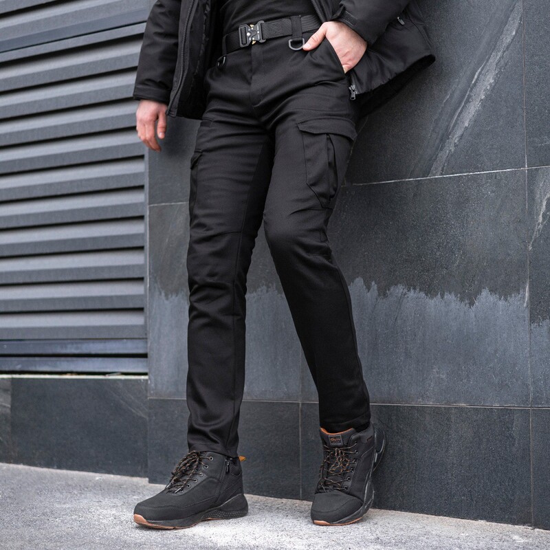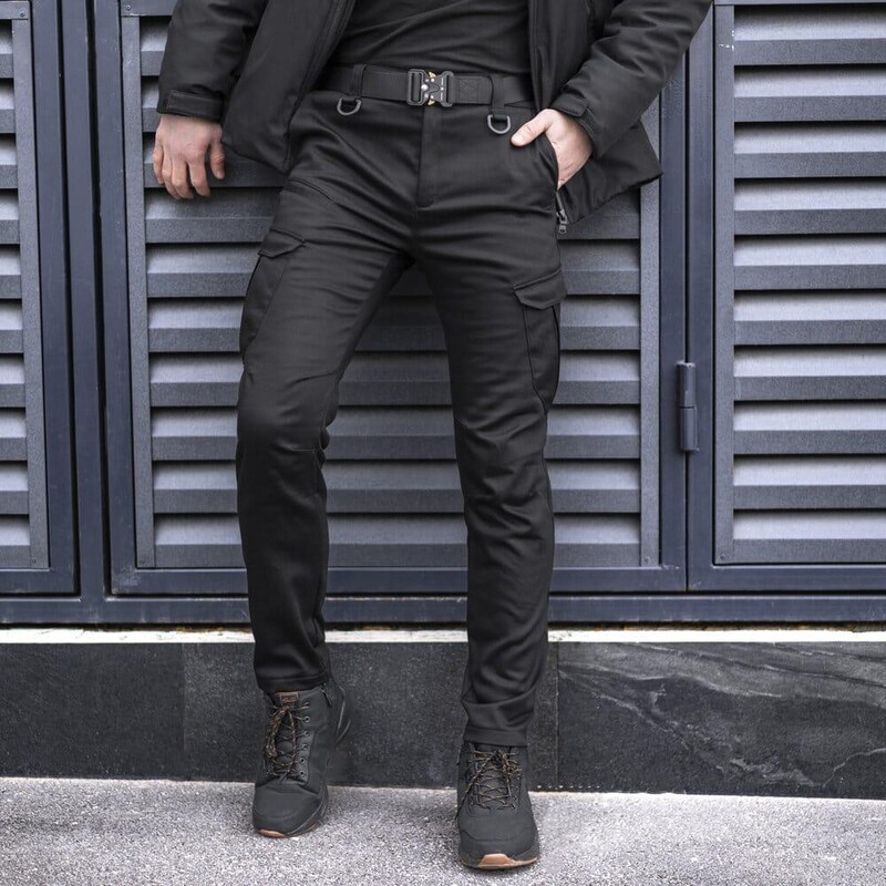 Штани виготовлені з турецького котону зі стрейчем на флісі, що робить їх надзвичайно практичними та зносостійкими. Петлі для ременя та пластикові півкільця для кріплення аксесуарів додають функціональності. Штани оснащені шістьма кишенями, що забезпечує д