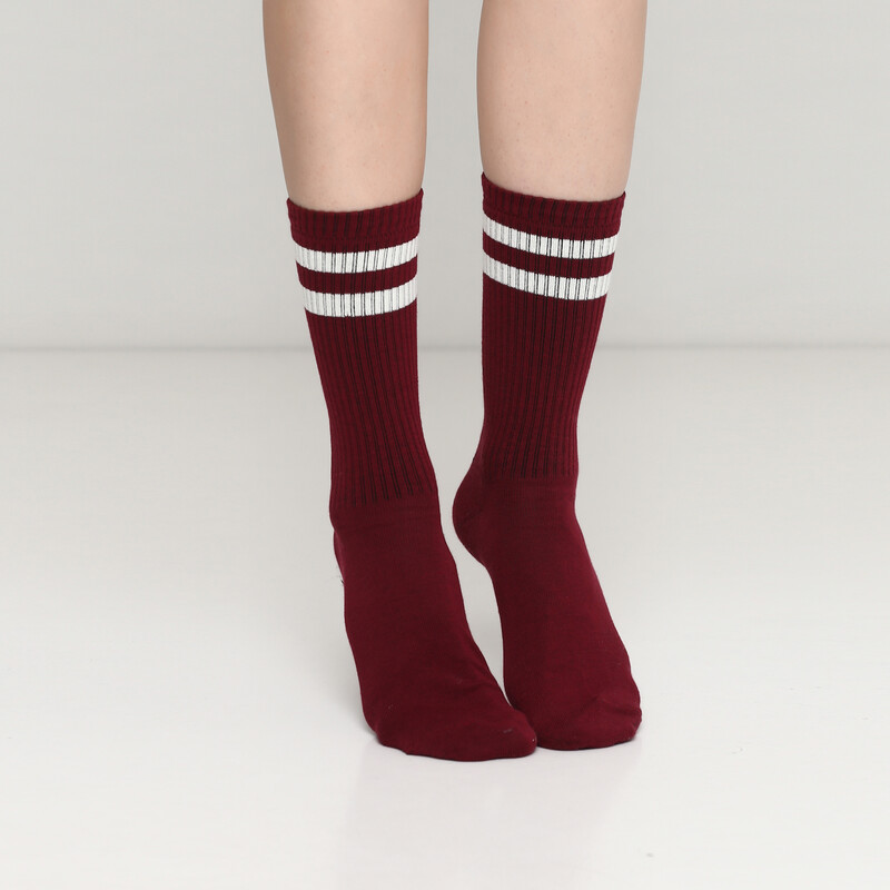 • Високі шкарпетки SOX бордового кольору з бежевими смужками
