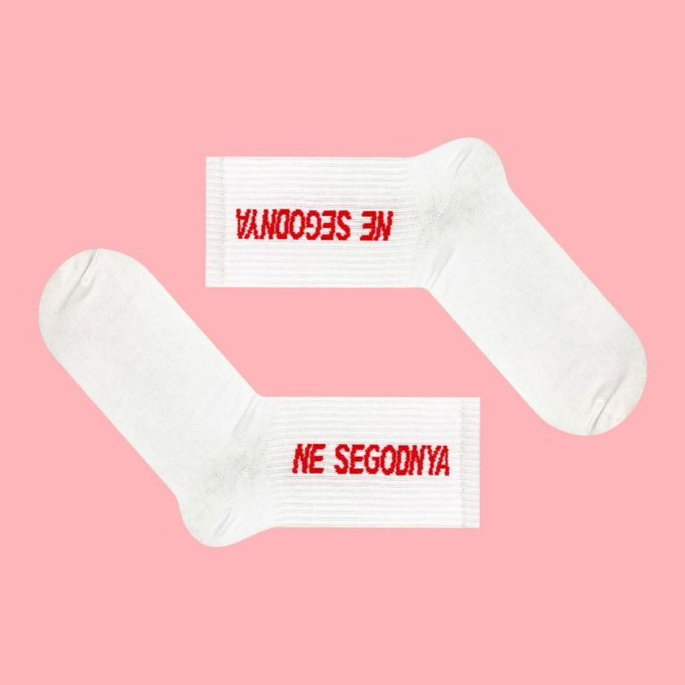 • Білі шкарпетки SOX з написом "NE SEGODNYA"