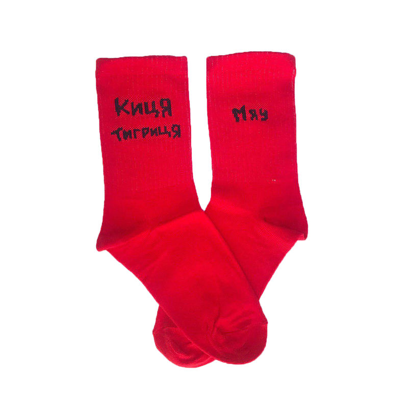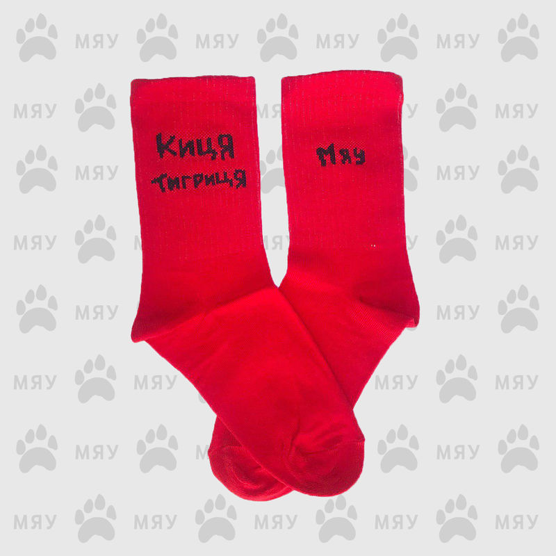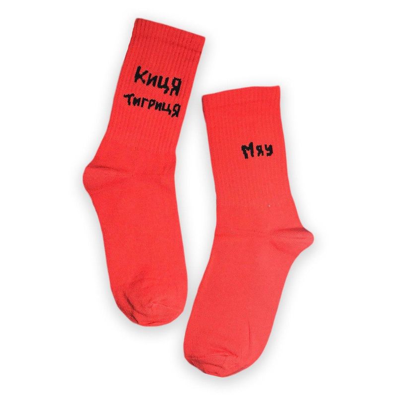 • Високі жіночі шкарпетки Sunny Focks червоні "Киця Тигриця - Мяу"
