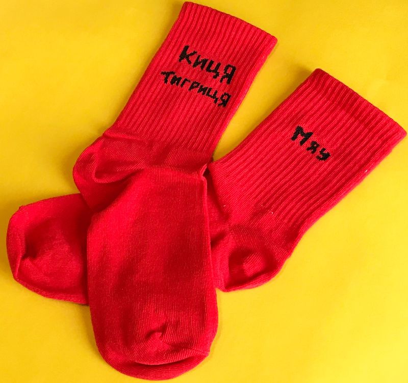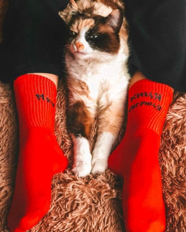 Фото - Високі жіночі шкарпетки Sunny Focks червоні "Киця Тигриця - Мяу" - Men box