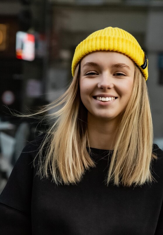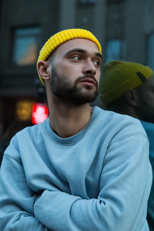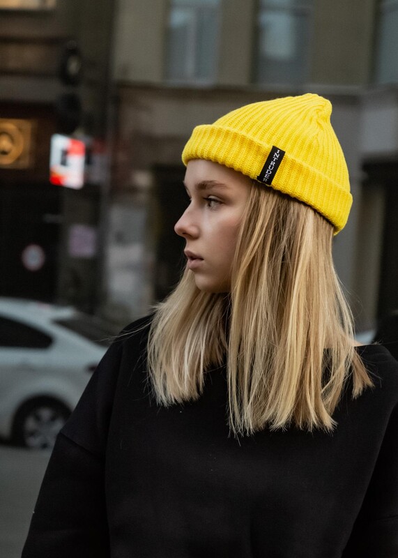 • В'язана шапка Intruder Short жовта з фірмовою нашивкою