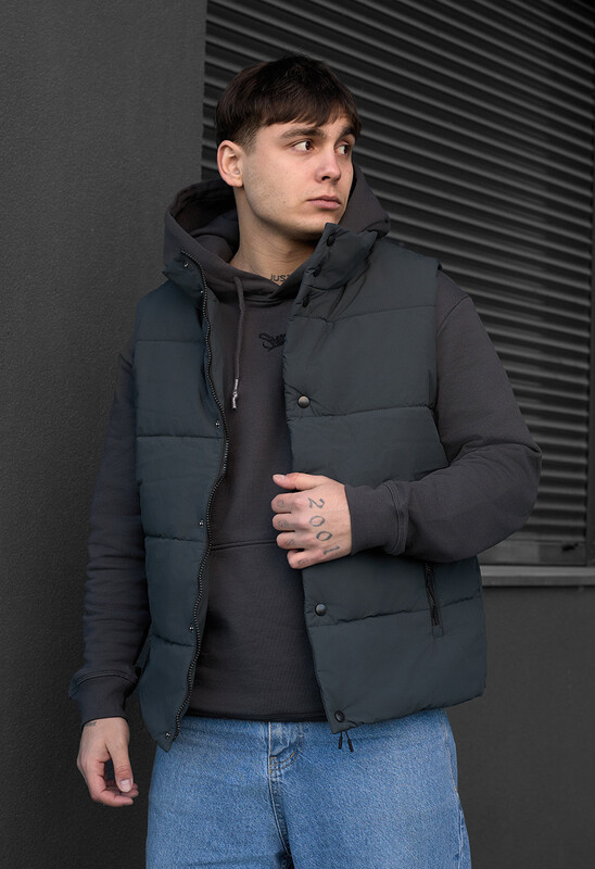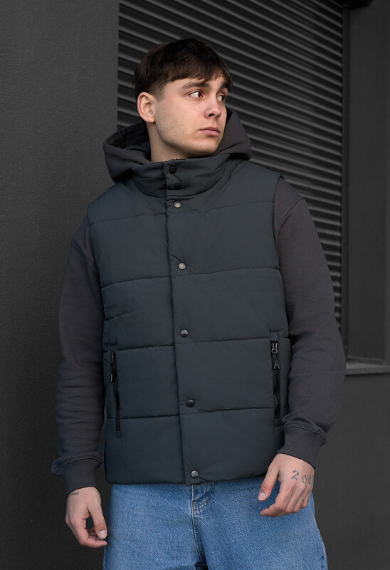 Практична утеплена жилетка — актуальна модель для демісезонного періоду, що вдало поєднуватиметься із будь-яким одягом. Прорізні кишені на блискавці збережуть твої речі у безпеці, а високий комір захистить від вітру.