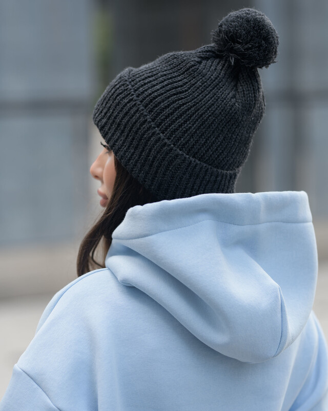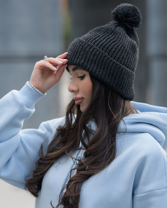 Стильна шапка з рубчастого трикотажу та м'яким помпоном підкреслить твій стиль і додасть комфорту в холодну пору року.