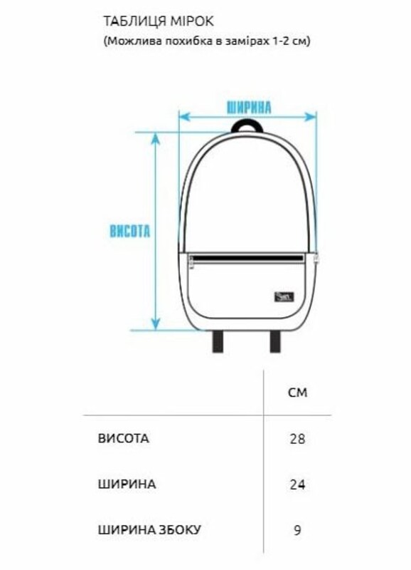 - розмір: висота 28 см, ширина 24 см, ширина збоку 9 см;