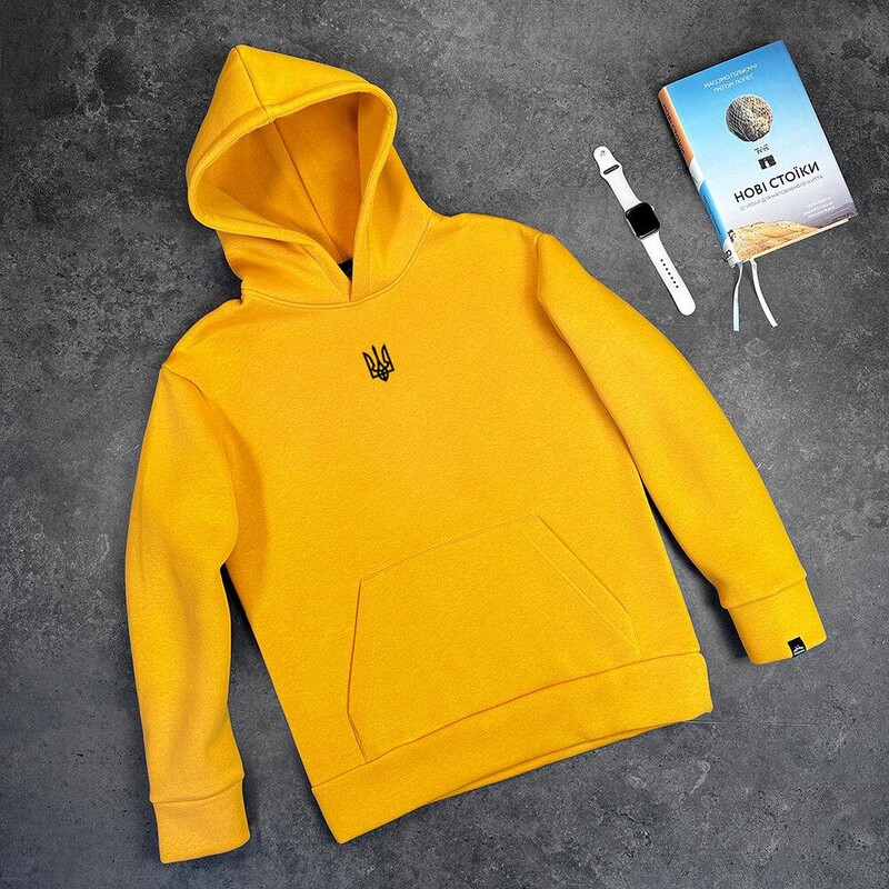 • Жовте худі Pobedov 008 із чорною вишивкою "Герб України"