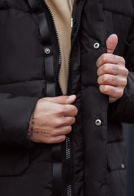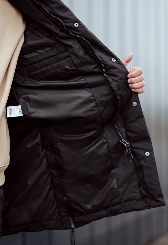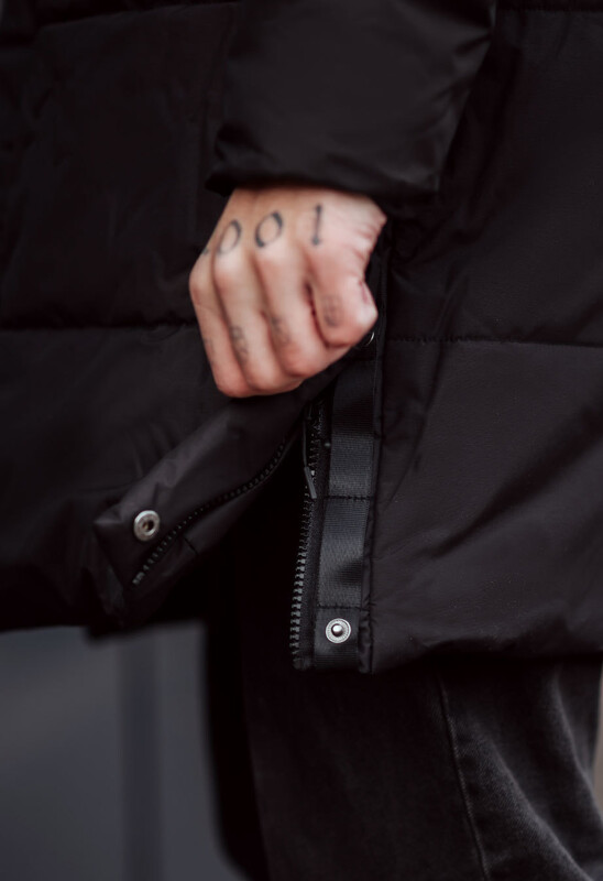 Зимова парка забезпечує приємне тепло у холодну пору року. Верхній шар з інноваційної мембранної тканини добре захищає від вітру та вологи, а розрізи з боків, які застібаються на блискавки з кнопками, надають моделі ще більшої функціональності.