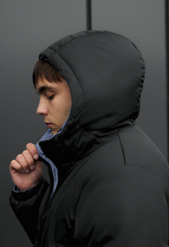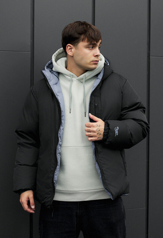 Ця об’ємна зимова куртка — ідеальне рішення для тих, хто прагне миттєво змінювати свій стиль, адже дві абсолютно різні сторони виробу, чорна та синьо-сіра, роблять її яскравим та практичним акцентом у гардеробі. Попри свою легкість (100% поліестер), куртка забезпечує надійний захист від холоду завдяки подвійному високоякісному утеплювачу Termoloft та Hollowsoft, який зігріє вас навіть у сильні морози. Класичний крій не сковує рухів, а висока горловина, що переходить у капюшон із регульованими шнурами, слугує надійним захистом від вітру. Якісний тракторний замок-блискавка дозволяє легко перемикатися між сторонами: чорна сторона має два потаємні кишені на блискавці, а синьо-сіра — три зовнішні кишені на блискавці та стильний принт на рукаві. Манжети на резинці забезпечують комфортне прилягання, гарантуючи тепло та стиль у будь-яку погоду.