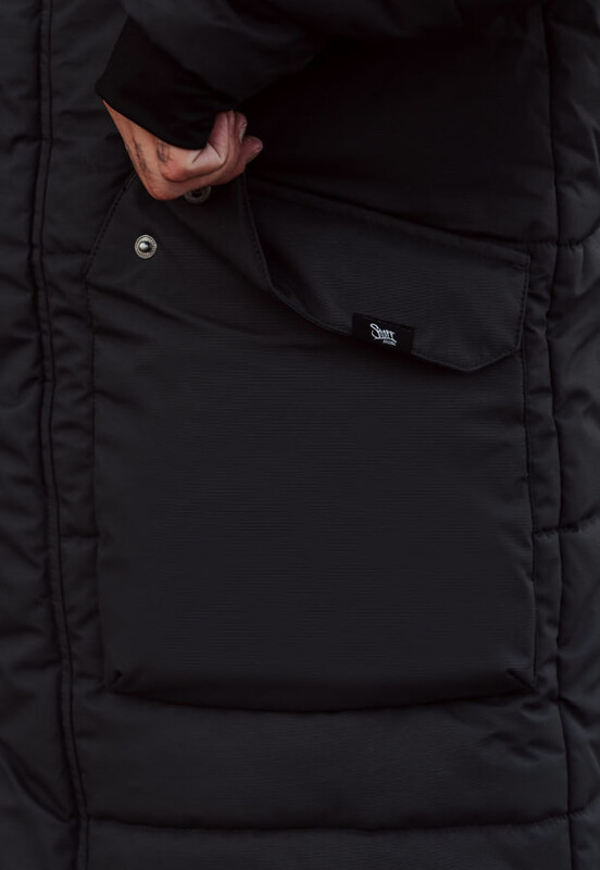 Практична зимова парка чудово зберігає тепло, а ще захищає від вітру та вологи, тому вона чудово підійде для прогулянок і тривалих подорожей. Бічні накладні кишені на кнопках виглядають дуже виразно, навіть коли вони наповнені різними речами. А в рукавах є додаткові манжети з розрізом для великого пальця, які запобігають протягам.