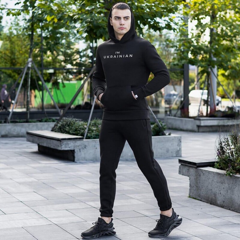 Фото - Зимове чорне худі Pobedov з білим принтом I'M UKRAINIAN - Men box