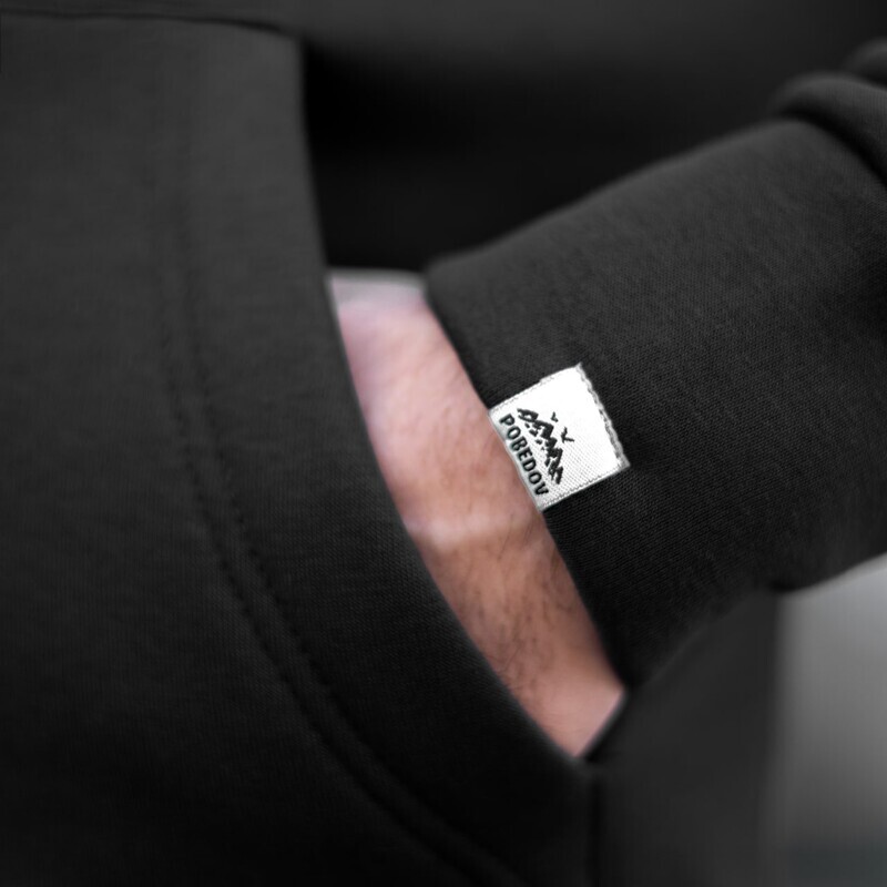 Фото - Базове тепле худі Pobedov 008 чорне з вишивкою "Герб" - Men box