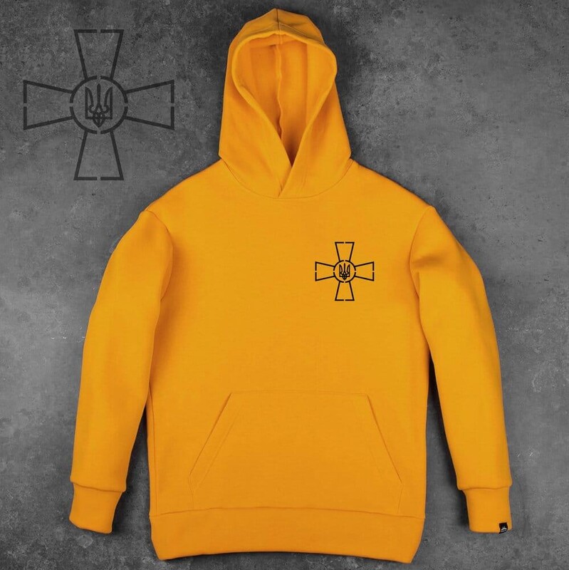 Жовте худі Pobedov 008 із чорною вишивкою "Герб України"