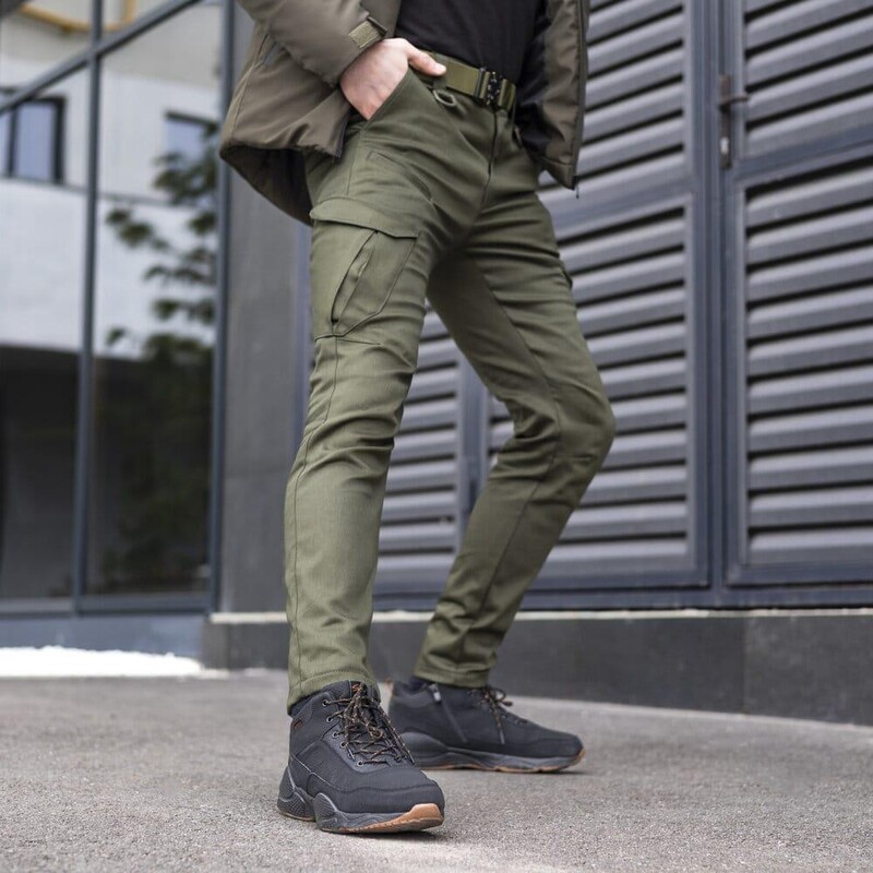 Штани виготовлені з турецького котону зі стрейчем на флісі, що робить їх надзвичайно практичними та зносостійкими. Петлі для ременя та пластикові півкільця для кріплення аксесуарів додають функціональності. Штани оснащені шістьма кишенями, що забезпечує д