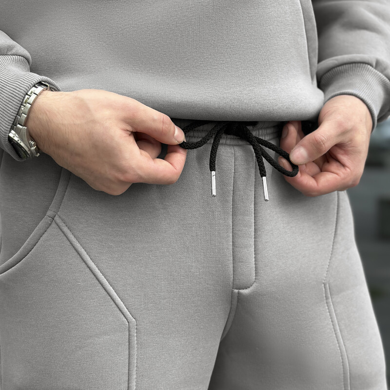 Костюм виготовлений із тринитки з начісом, матеріал дозволяє шкірі дихати та забезпечує максимальний комфорт протягом усього дня та створює легкий і розслаблений образ.