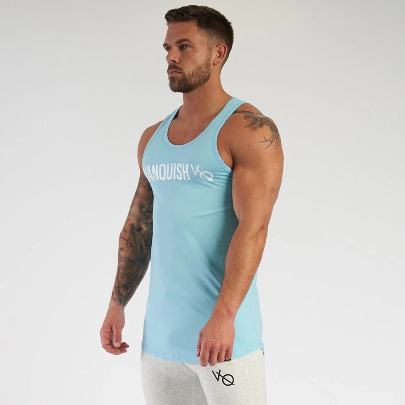 • Удлиненная спортивная майка VQH голубого цвета