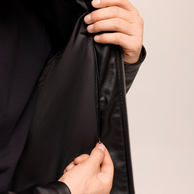 Куртка Pobedov Brim в чёрном цвете – это стильная и современная альтернатива классической коже, идеально подходящая для весенне-осеннего сезона. Модель сочетает лаконичный дизайн и современные материалы: она выполнена из мягкой эко-кожи на замше (100% полиэстер), что придаёт ей эффектный вид и приятную на ощупь текстуру. Благодаря прямому крою и воротнику-стойке, куртка создаёт аккуратный и универсальный силуэт, который легко впишется в любой повседневный гардероб. Модель не имеет капюшона, застёгивается на центральную молнию и оснащена внутренней подкладкой для комфортной посадки. Два боковых кармана на молнии добавляют практичности и современных акцентов. Куртка выглядит как классическая кожа, но при этом значительно проще в уходе.