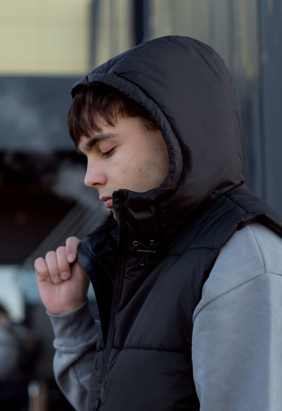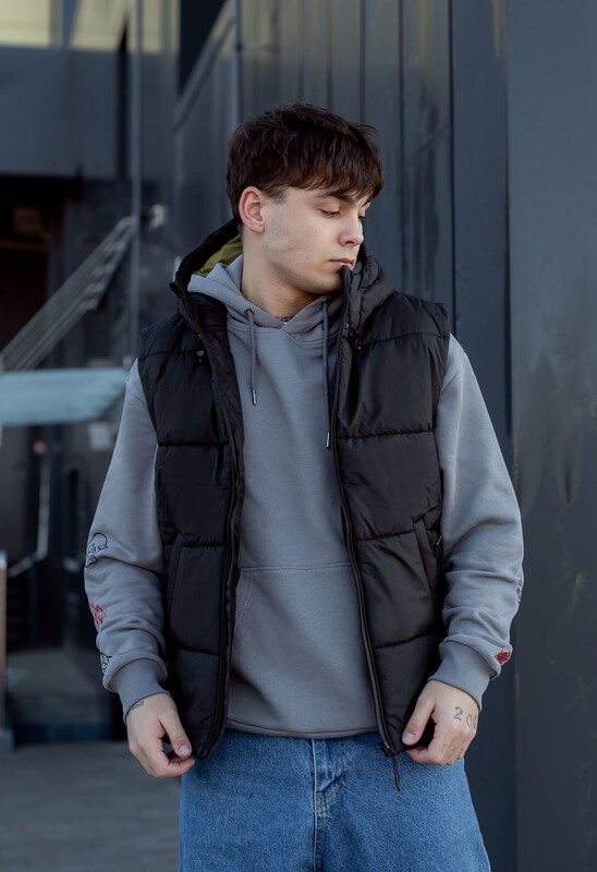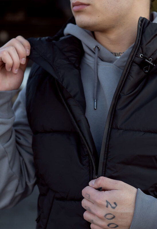 Практична утеплена жилетка — актуальна річ для демісезонного періоду, що чудово поєднується із будь-яким одягом. Капюшон, чий об'єм регулюється еластичною стяжкою, надійно захищає від вітру, а кишені на блискавці гарантують безпеку твоїх речей.