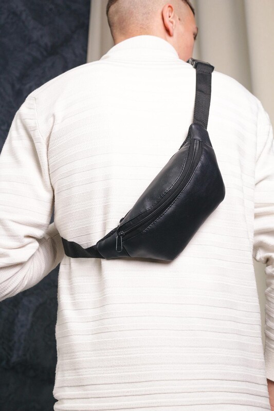 Фото - Универсальная бананка Intruder из кожзама черного цвета - Men box