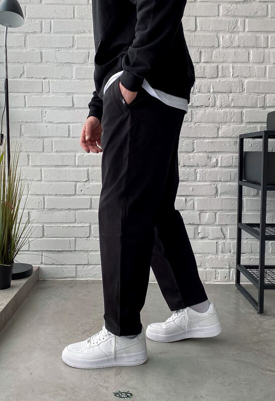 Стильні штани з вільним кроєм стануть чудовим доповненням до будь-якого образу. Модель має прорізні кишені та широкі петлі для ременя.