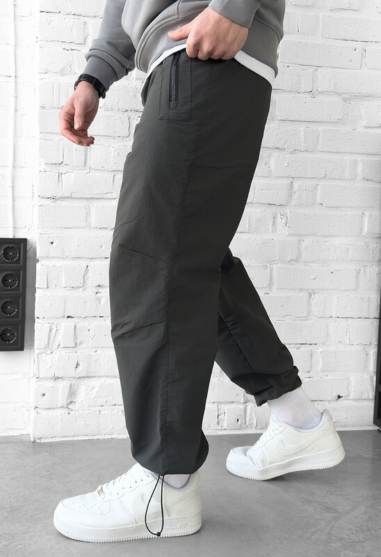 Легкие брюки с эластичными стяжками для регулировки объема. Они защитят от ветра и мелких осадков и гарантируют повседневный комфорт. Прекрасно комбинируются с вещами в стиле street и casual.