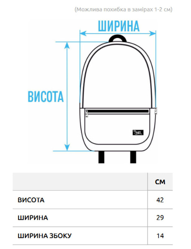 - размер: высота 42 см; ширина 29 см; ширина сбоку 14 см;