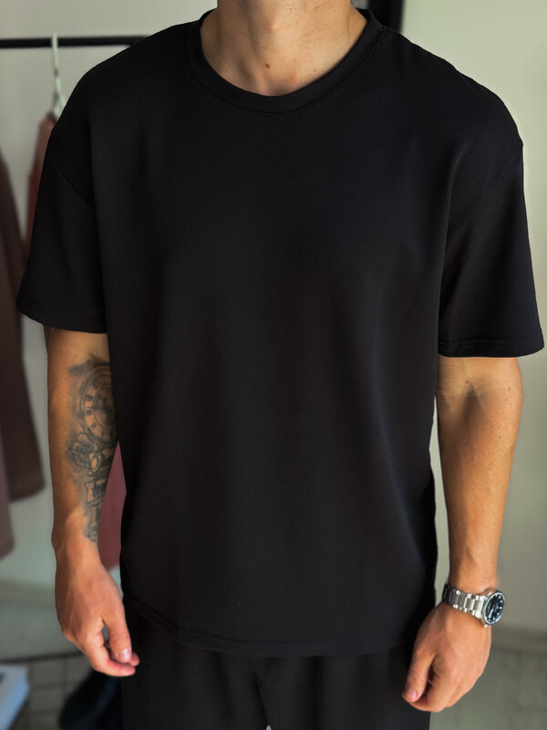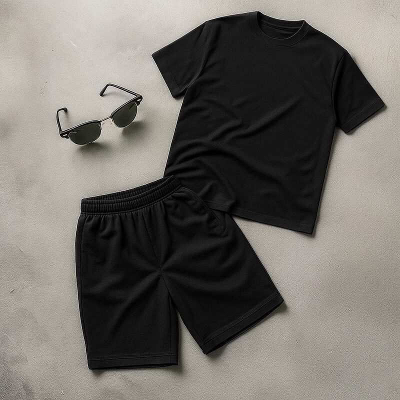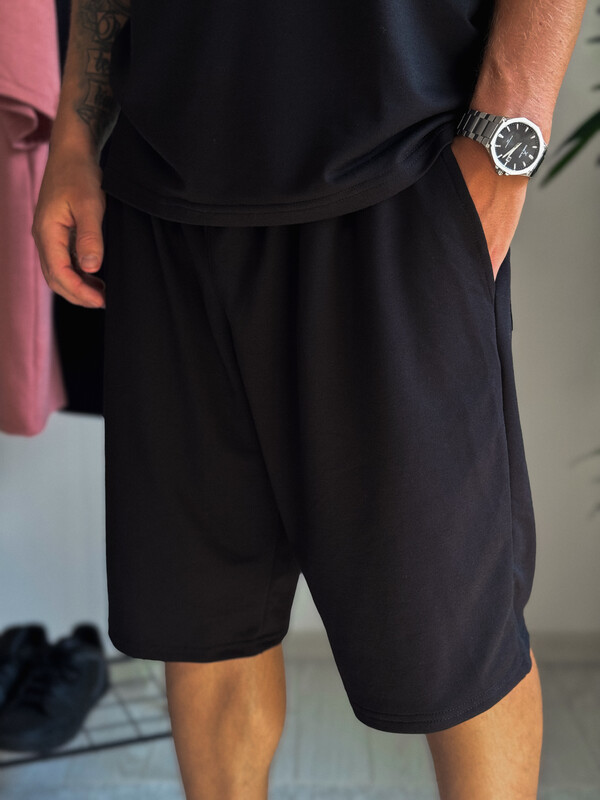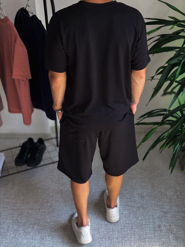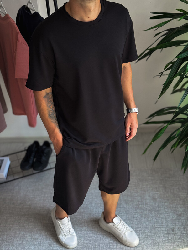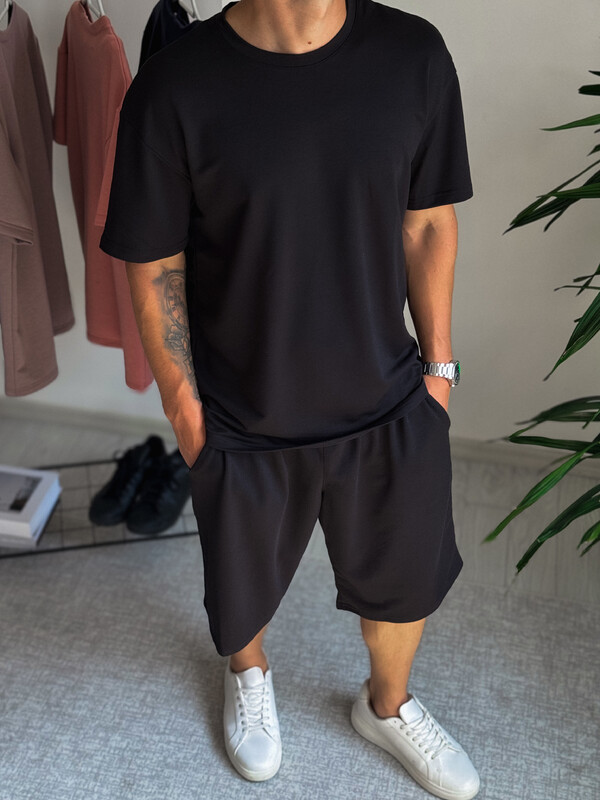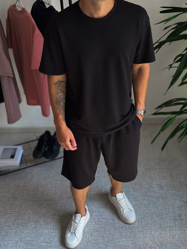 Мужской летний костюм Intruder черного цвета — универсальный и практичный вариант на каждый день. Выполнен из мягкой двунитки, материал приятный к телу, не сковывает движений и хорошо держит форму. Черный цвет подчеркивает стиль и визуально стройнит. Футболка с коротким рукавом и классической круглой горловиной подойдет под любой образ. Шорты средней длины, с удобной широкой резинкой, дополнены вместительными боковыми и задними карманами. Крой прямой, без лишнего декора. Такой комплект легко комбинируется с кедами, сандалиями или кроссовками и подойдет как для прогулок, так и для отдыха за городом.