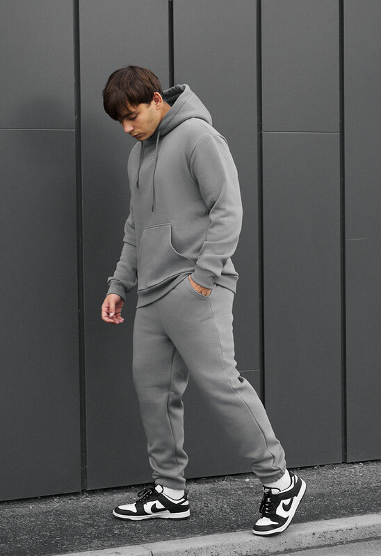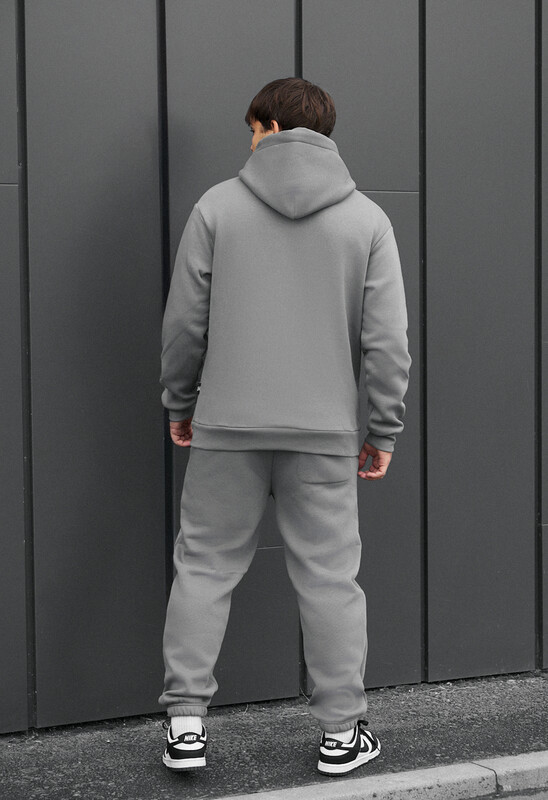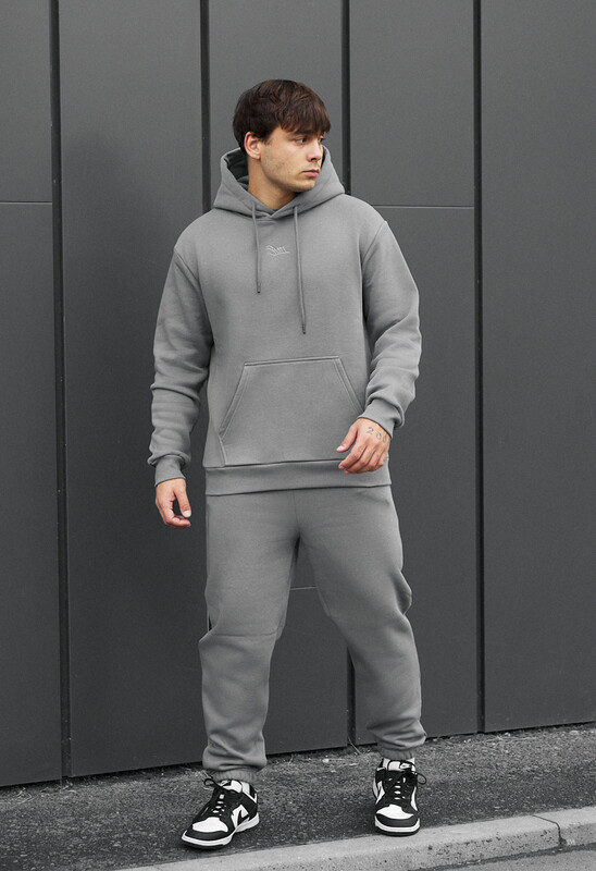 Стильный, удобный и утеплённый спортивный костюм в приятном сером цвете подарит ощущение комфорта и уюта на протяжении всего дня. Костюм идеально подходит для круглогодичной носки, поскольку изготовлен из качественного европейского 100% хлопка, утеплённого микрофлисом премиум-класса. Худи имеет крой со спущенными плечами и большой карман-кенгуру спереди. Особый акцент — качественная вышивка с логотипом бренда на груди. Ширина капюшона легко регулируется шнуром, а фирменная бирка вшита в боковой шов. Брюки оснащены эластичным поясом в рубчик со шнурком для удобной посадки. Для функциональности предусмотрено два прорезных кармана по бокам и один накладной открытый карман сзади. Снизу брюки фиксируются манжетами с эластичной резинкой.