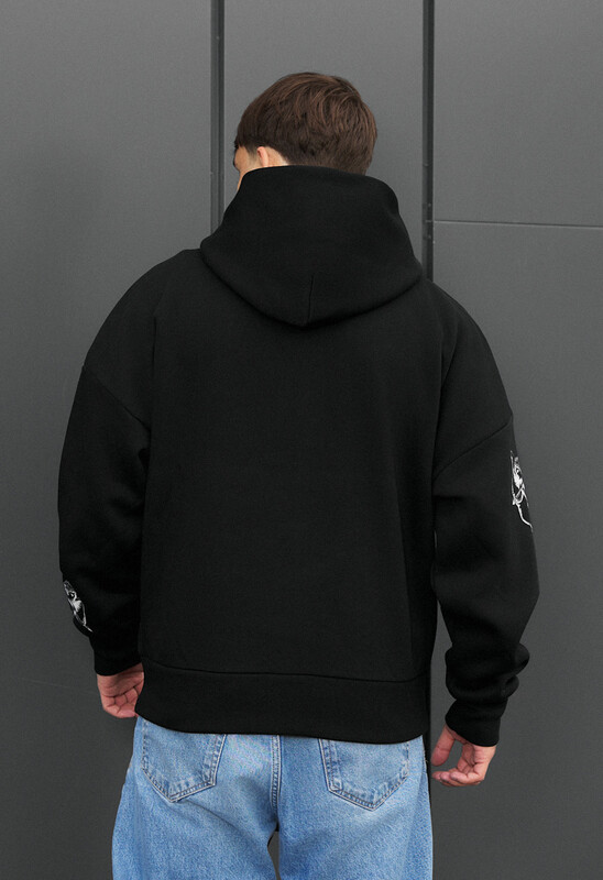 Черное худи с белым принтом ангела с луком — словно история о контрастах света и тьмы. Купидон, нарисованный на груди, будто стережет тепло, скрытое в мягком флисе, и метко посылает стрелы вдохновения в каждый серый день. Oversize-крой придает образу свободу и непринужденность, позволяя чувствовать себя стильно и уверенно. Капюшон без шнурков сохраняет лаконичность силуэта, а принты на рукавах добавляют выразительности. Плотный европейский хлопок и утепление микрофлисом премиум-класса обеспечивают комфорт даже в промозглую погоду. Это худи создано для сезона осень/зима — когда хочется уюта, но не хочется терять стиль.