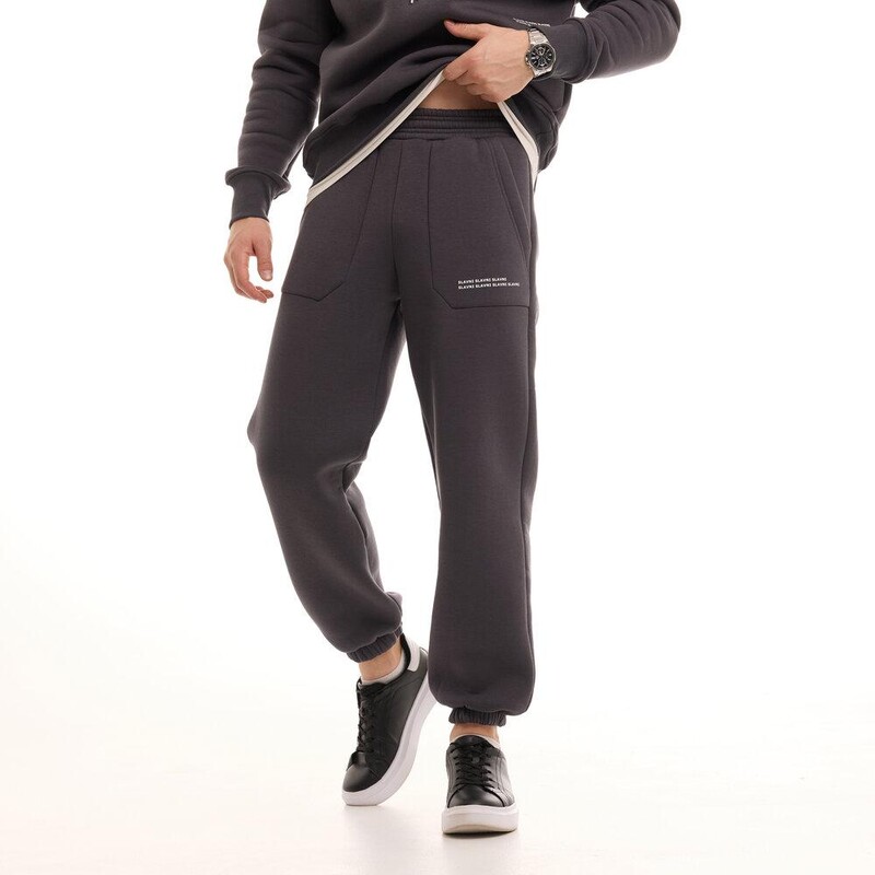 Ощутите уют без потери стиля: Ваш зимний "бронежилет" от Pobedov! Этот спортивный костюм PMF в глубоком тёмно-сером цвете — это не просто одежда, а идеальный выбор для тех, кто ценит тотальный комфорт, тепло и современный лаконичный стиль в каждом движении. Мягкая трёхнитка с начёсом (80% хлопок) — это тактильная роскошь, которая прекрасно сохраняет тепло и обеспечивает ощущение уюта. Кофта свободного кроя со спущенной линией плеча создаёт расслабленный силуэт, а манжеты на трикотажной резинке и регулируемый капюшон подчёркивают функциональность; брюки свободного кроя оснащены поясом со шнурком, двумя накладными карманами и манжетами снизу, гарантируя максимальное удобство. Финальные штрихи — стильные фирменные наклейки Pobedov на кофте и брюках, которые добавляют характера и узнаваемости.