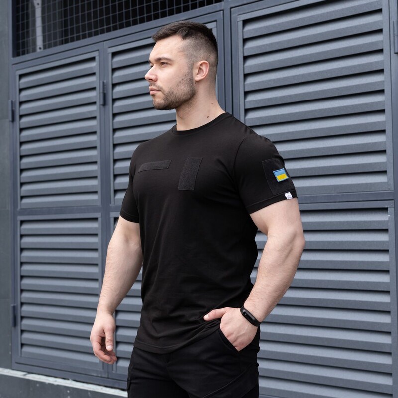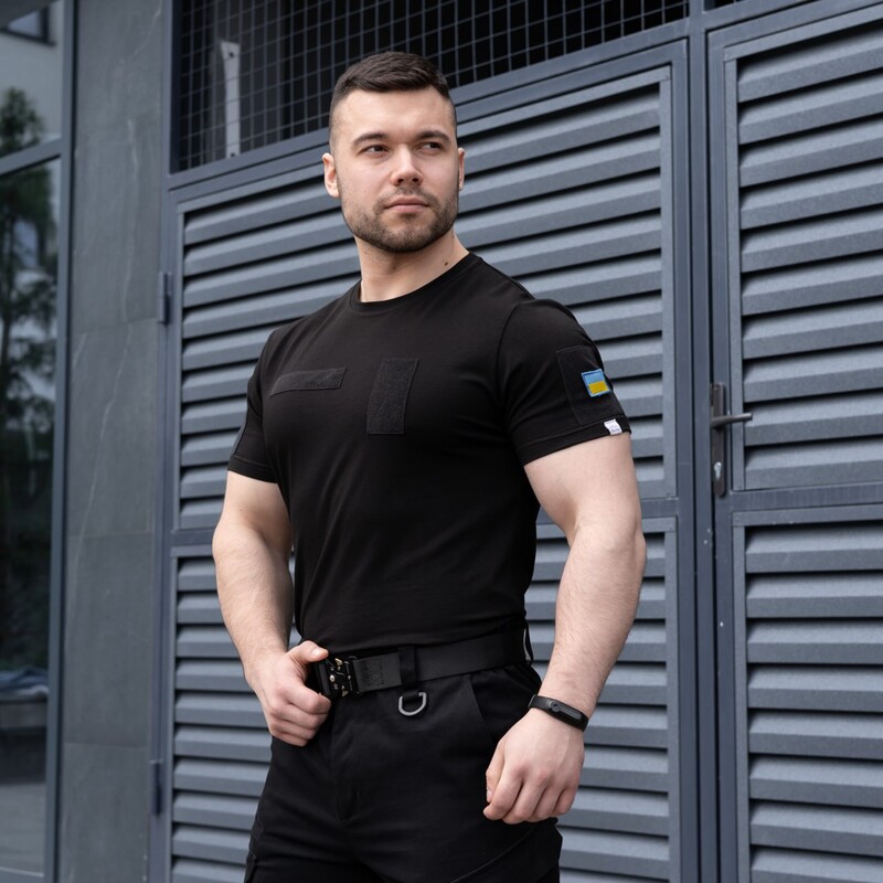 На груди и рукавах предусмотрены панели велкро для крепления шевронов и отличий. В комплекте к футболке идет один шеврон – флаг Украины. Благодаря уникальной разработке кроя, футболка идеально садится по фигуре и в то же время не сильно облегает, со